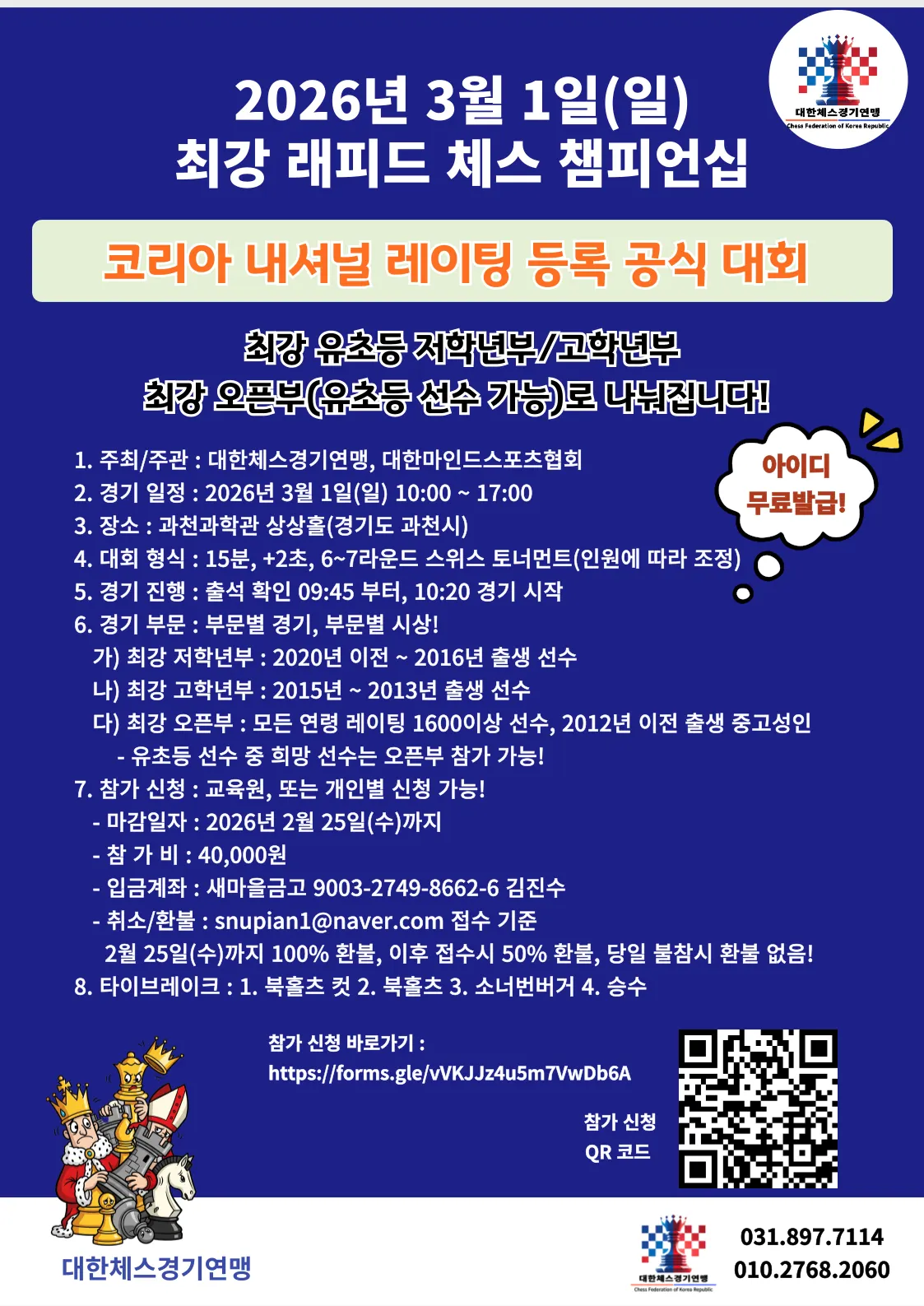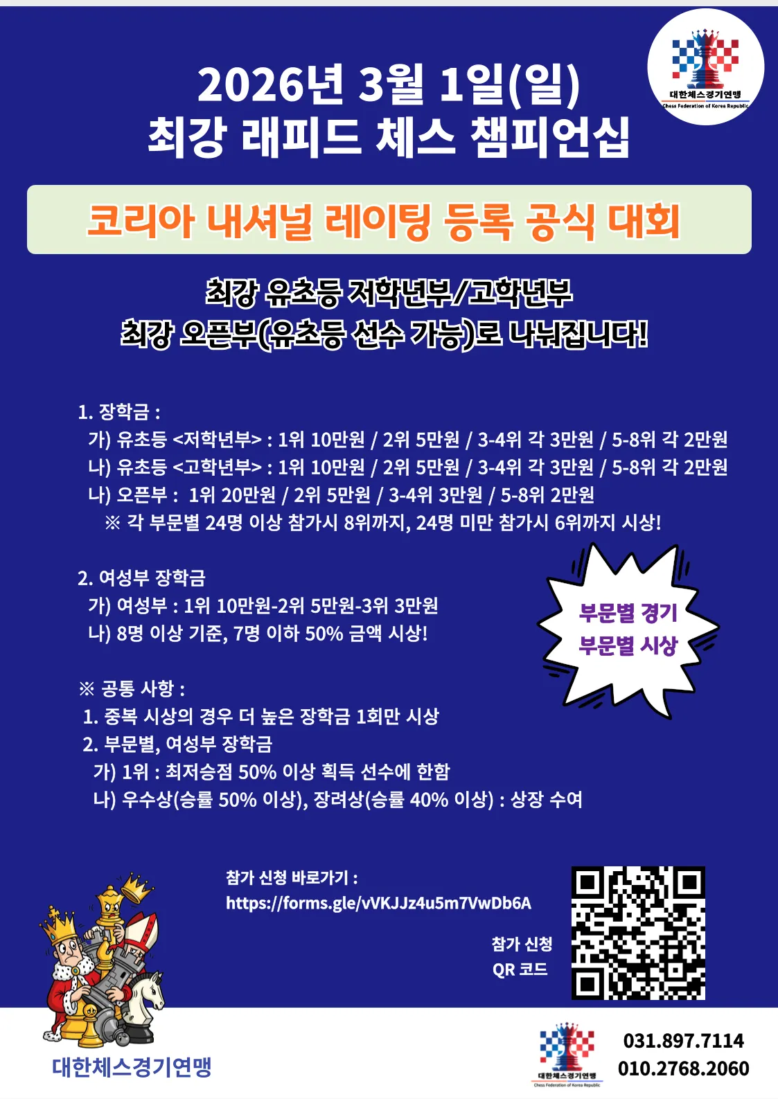 주최 / 주관 | 대한체스경기연맹, 대한마인드스포츠협회 |