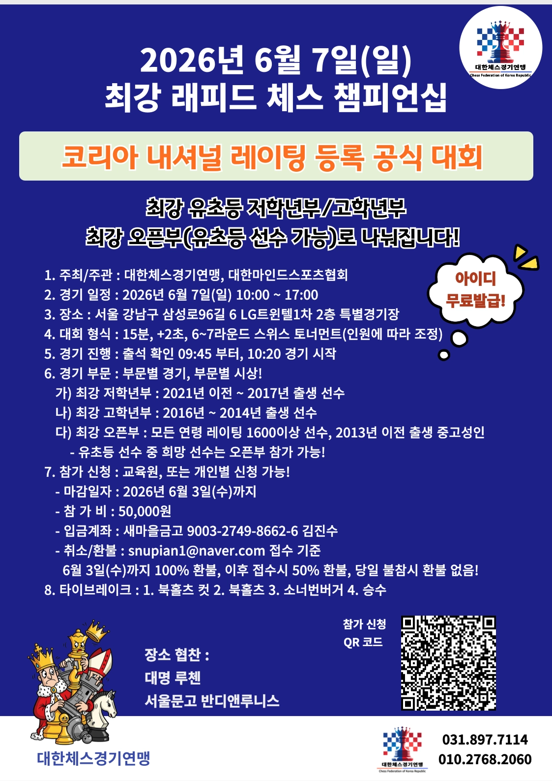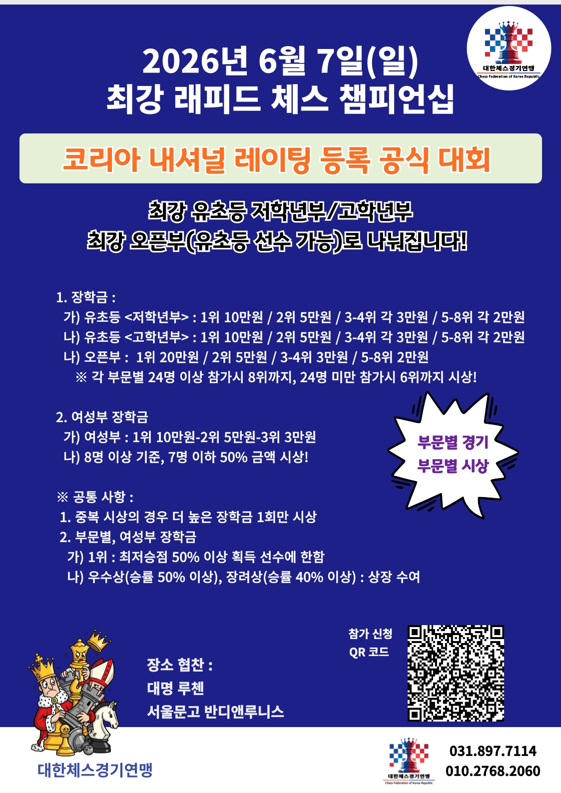 주최/주관 | 대한체스경기연맹, 대한마인드스포츠협회 |