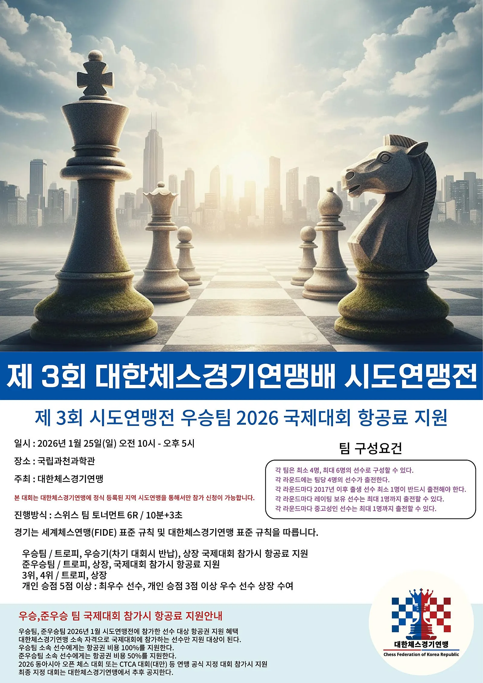 최종 지정 대회는 대한체스경기연맹에서 추후 공지 예정