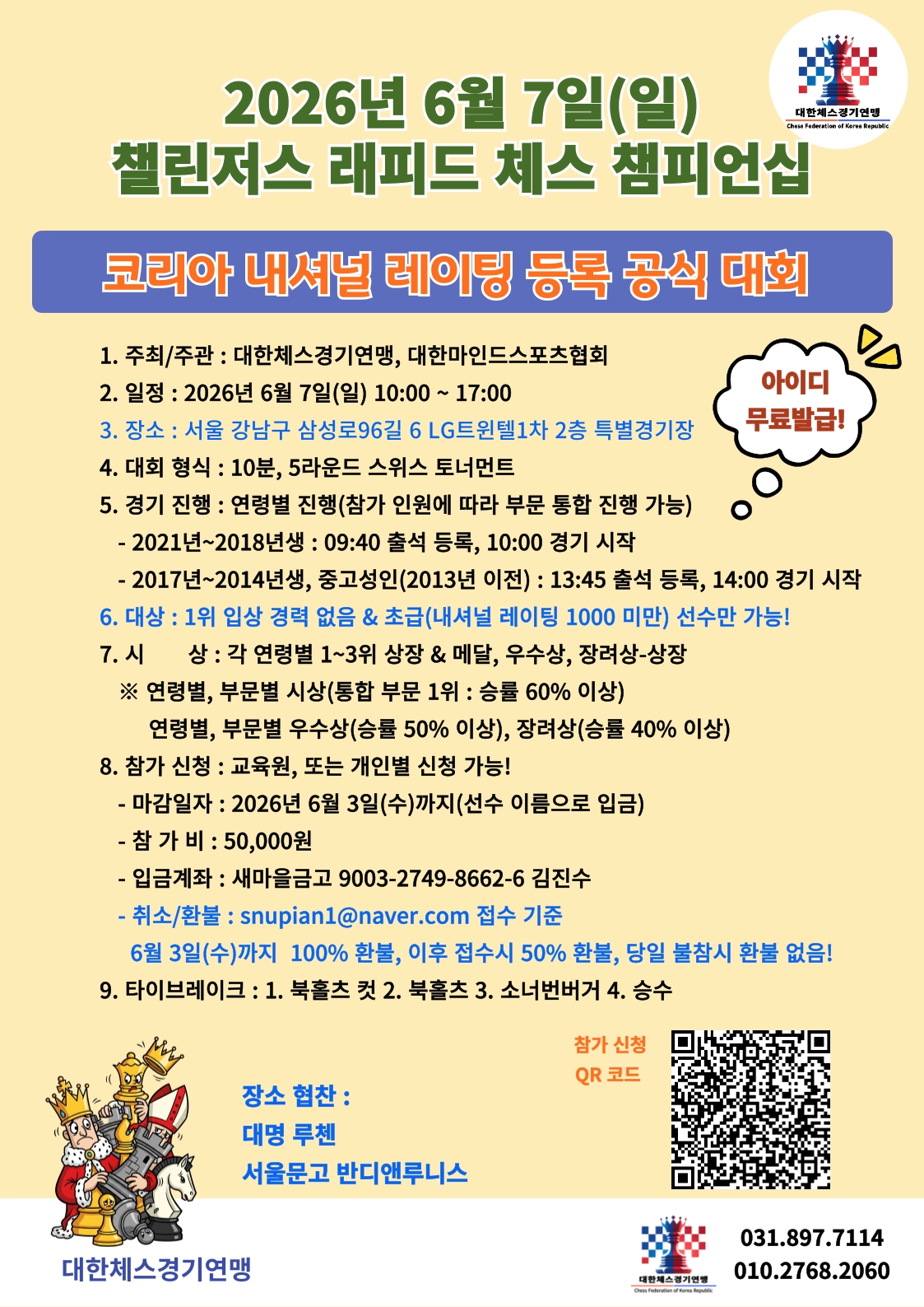 주최/주관 | 대한체스경기연맹, 대한마인드스포츠협회 |