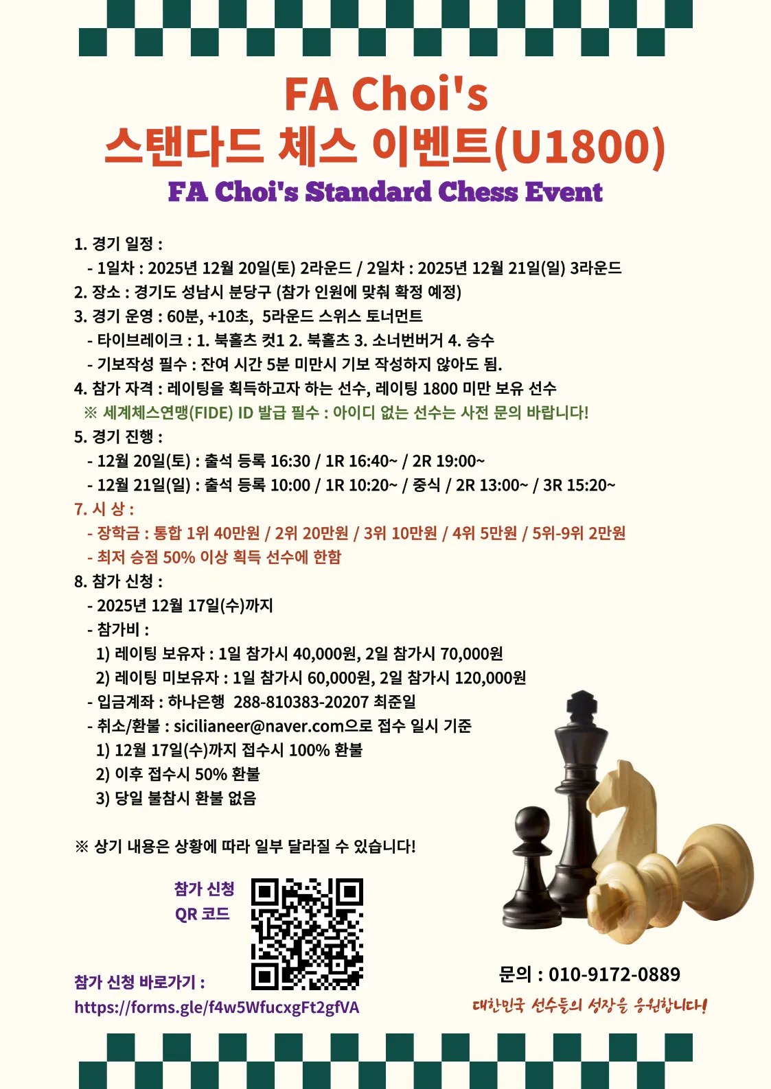 FA Choi's 스탠다드 체스 이벤트(U1800)
