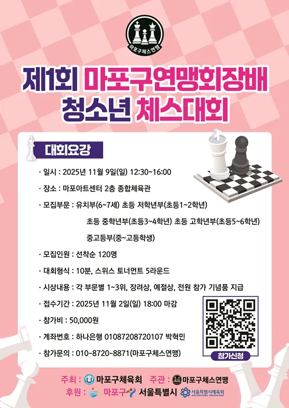 후원 | 마포구, 서울특별시, 서울특별시체육회, (사)대한체스연맹 |