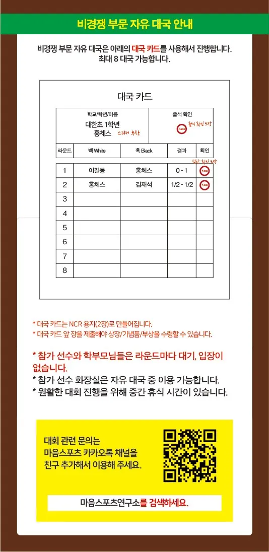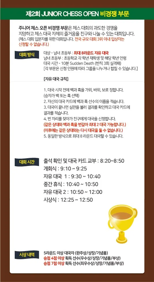 비경쟁 부문 안내 | 체스 대회의 과도한 경쟁을 지양하고, 체스 대국의 즐거움을 친구와 함께 나누는 대회.